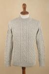 This well-crafted alpaca sweater is lighter than a typical Aran jumper knit from merino wool. It drapes well and flows over your curves. Side slits give ease of movement. A very fair price makes this a good choice. I was delighted with the fit.