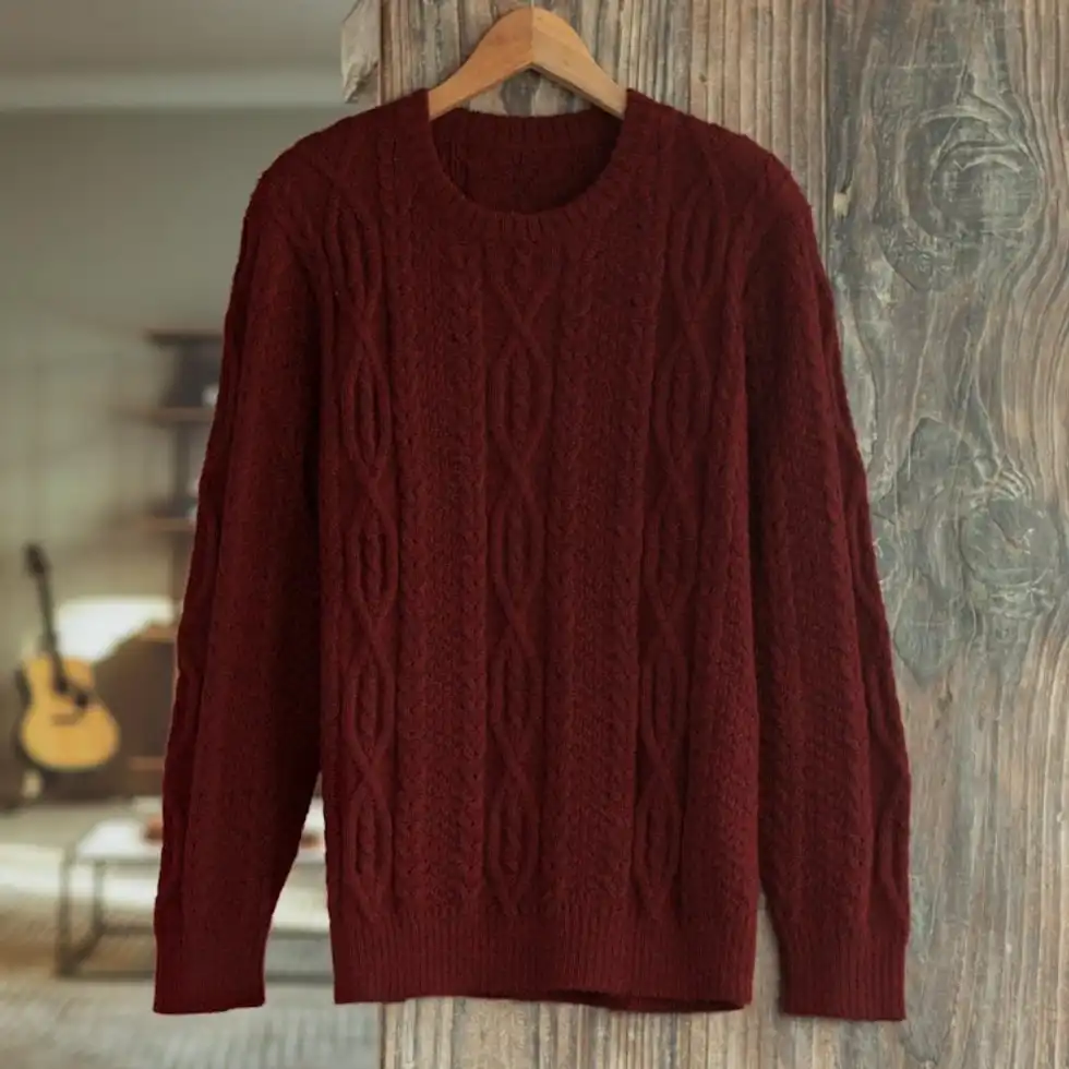 Dark Red Men's 100 Alpaca Sweater 'Field and Forest' Item ID: 2671820293