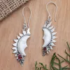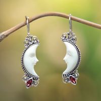 Garnet and Silver Crescent Moon Dangle Earrings from Bali 'Natural Moonlight' Item ID: 2671820804