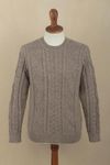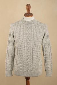 Men's 100 Alpaca Pullover Sweater With Braid Pattern 'Grey Braids' Item ID: 2671819688