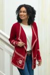 This cardigan is truly fabulous and you can wear it in many ways. Depending on how you wear it, the sweater can be more western cowgirl or Indigenous in its look. I love it with a knit black dress or a long black skirt and top. Add some western boots for greater fun. I loved this one so much that I just ordered the shorter off-white and black trim version. Thank you Wilbur for a great piece of wea... read more
