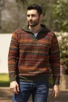 Men's Soft Grey and Red 100 Alpaca Pullover from Peru 'Grey Adventures' Item ID: 2671820280