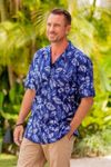 Russet and Salamander Geometric Batik Cotton Shirt for Men 'Denpasar Gentleman in Russet' Item ID: 2671821546
